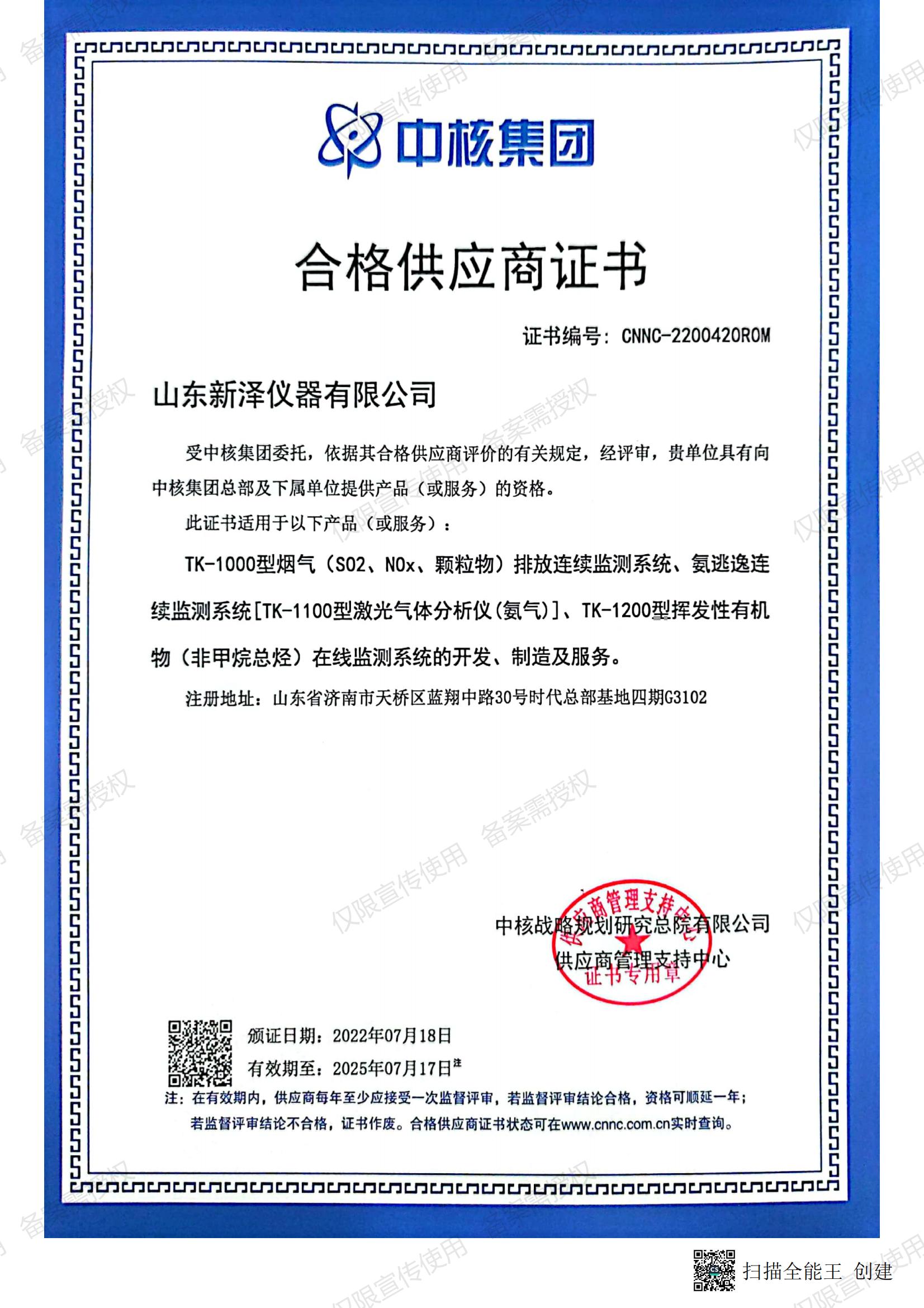 熱烈祝賀山東新澤儀器有限公司成為中核合格供應(yīng)商