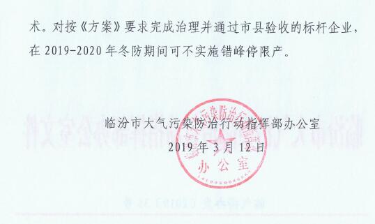日前,山西臨汾印發《臨汾市2019年鋼鐵、焦化行業深度減排實施方案》。方案要求: