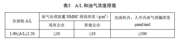 5.3 A/L和油氣濃度應(yīng)執(zhí)行表3規(guī)定的限值。