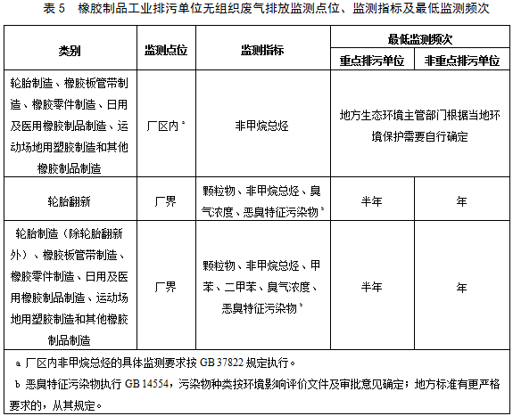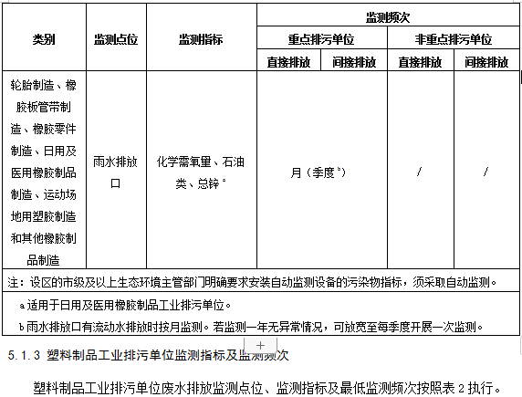5.1.2 橡膠制品工業(yè)排污單位監(jiān)測(cè)指標(biāo)及監(jiān)測(cè)頻次