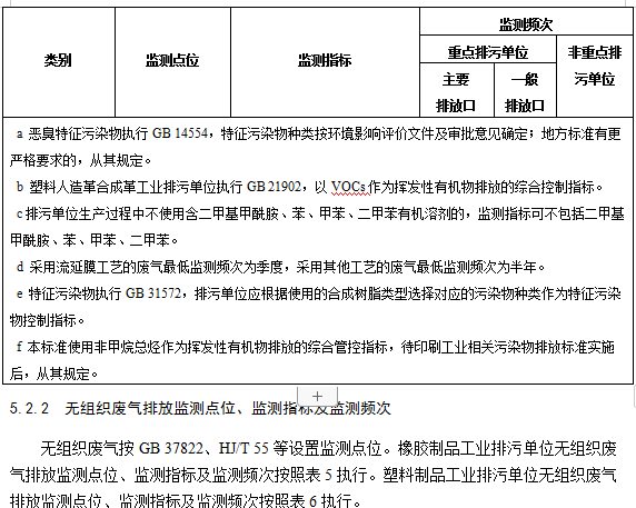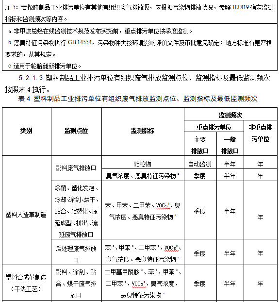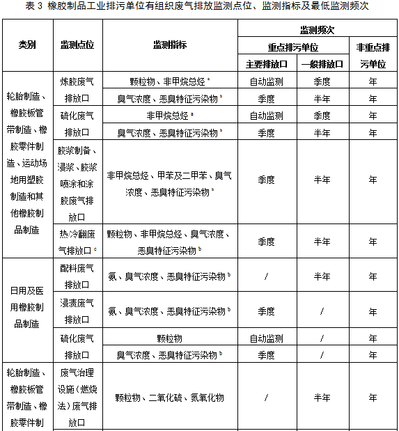 5.2.1.2橡膠制品工業(yè)排污單位有組織廢氣排放監(jiān)測(cè)點(diǎn)位、監(jiān)測(cè)指標(biāo)及最低監(jiān)測(cè)頻次按照表3執(zhí)行。