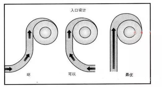 另外,很多設(shè)計人員因為一些原因會在分離器入口前放一個彎頭(如圖2)。實際上,為了達到好的分離效果,氣體應(yīng)該通過直管進入除塵器,直管的長度約為6-8倍入口管直徑(有資料上說4-10倍的)。這樣做主要是為了防止塵粒濃聚在彎頭外側(cè)再進入分離器,氣體中的塵粒在氣流中分配不均。