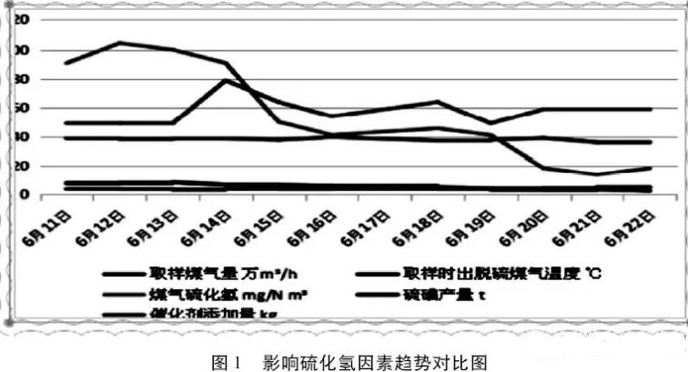 ⑸優(yōu)化脫硫及脫苯系統(tǒng)工藝及操作,如加大脫硫液循環(huán)量、將蒸氨氨氣全部切入脫硫系統(tǒng)、增加催化劑用量、提高脫苯塔頂溫度,降低回爐煤氣H2S和有機硫含量(圖1)。