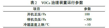 VOCs 治理裝置主要運行參數(shù)如表2。