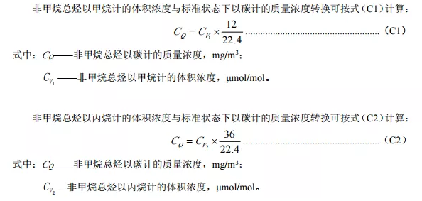 注:(1)以上各參數(shù)區(qū)間劃分以參比方法測(cè)量結(jié)果為準(zhǔn)。(2)F.S.表示滿量程。(3)非甲烷總烴排放濃度單位換算按照如下公式換算